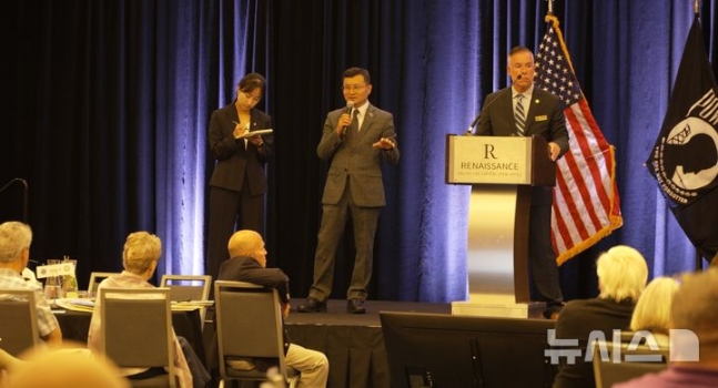국유단, 미 6·25참전용사 유족 만나 유해발굴사업 설명 달라스조아 0 859 2024.08.17 03:45 [뉴시스] 이근원 국방부 유해발굴감식단장은 15일(현지시각) 미국 버지니아주 르네상스호텔에서 미 국방부 전쟁포로·실종자 확인국(DPAA)이 주관하는 '6·25전쟁 참전 유가족 초청행사'에 참석해 한국 내 미군 유해발굴사업의 진행 및 발굴 경과와 한·미 공동 유해발굴 협력 사항 등을 설명하고 있다. (사진= 국방부 제공) 2024.08.17. 변해정 기자 ⓒ 뉴시스