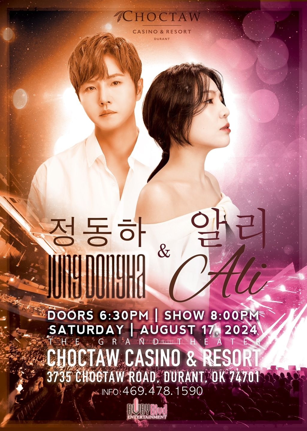 대한민국 최고의 음악프로 "불후의 명곡"을 대표하는 가수 정동하와 알리의 노래를 직접 들을수 있는 공연! 한여름밤 펼쳐질 환상의 무대가 8월 17일 오클라호마 듀란트 촉토우 카지노의 그랜드 극장에서 저녁 8시에 펼쳐진다!