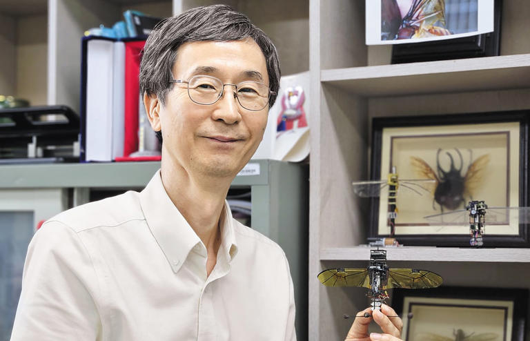영화의 상상력을 현실로 만드는 과학자가 있다. 박훈철(62) 건국대 스마트운행체공학과 교수는 장수풍뎅이만 20년 동안 관찰한 로봇공학자다. 그는 1일 국제 학술지 네이처에 장수풍뎅이를 모방한 초소형 로봇을 발표했다. 장수풍뎅이는 머리에 기다란 뿔이 달린 딱정벌레다. 박 교수는 앞서 2020년에는 장수풍뎅이 로봇의 비행 중 충돌 실험을 분석한 논문을 사이언스에 게재했다. 4년 만에 장수풍뎅이 로봇 연구로 과학계 양대 학술지의 인정을 받은 것이다.