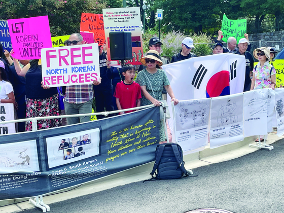탈북민 2600명 강제북송 반대집회가 지난 23일 워싱턴DC 중국대사관 앞에서 열렸다.