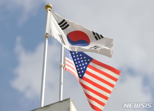 [뉴시스 김금보 기자] 2023년 7월26일 서울 종로구 대한민국역사박물관에서 열린 한미동맹70주년 기념 특별전에 태극기와 성조기가 펄럭이고 있다. 2025.06.27.