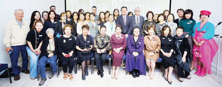 기념사진을 찍고 있다. 맨앞줄 오른쪽 네 번째가 김홍자 회장.