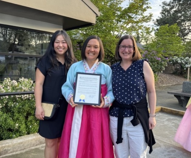 이날 커클랜드시의회에서 열린 선언문 채택 행사에는 그레이스 브라운 변호사는 물론 남편인 존 김 박사(내과전문의), 4명의 자녀에다 어머니인 윤부원 이사까지 모두 한복을 곱게 입고 참석해 큰 주목을 받았다.