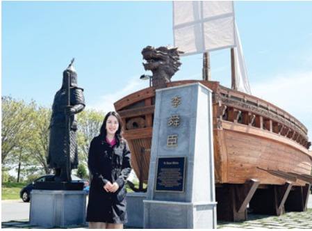 야외에 설치된 조형물인 만큼 칠도 벗겨지고 보수도 필요하던 차에 김 대표는 “사진 명소로 자리 잡은 거북선을 보수하면서 이순신 장군을 소개하는 비문도 설치했다”며 “한국을 알리고 이순신 장군도 소개하는 기회가 되길 바란다”고 말했다.