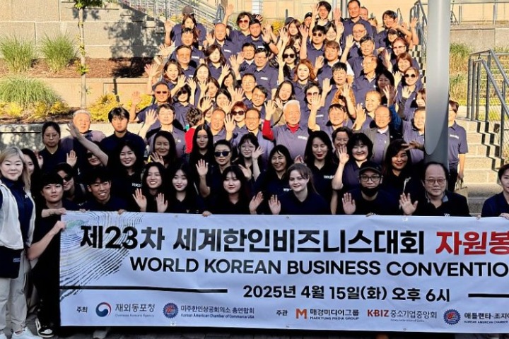 제23차 세계한인비즈니스대회(WKBC)의 성공적인 개최를 위해 10대부터 70대까지 다양한 연령의 자원봉사자 300여명이 모였다.