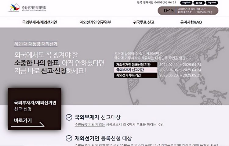 재외선거인 등록 홈페이지 캡처.