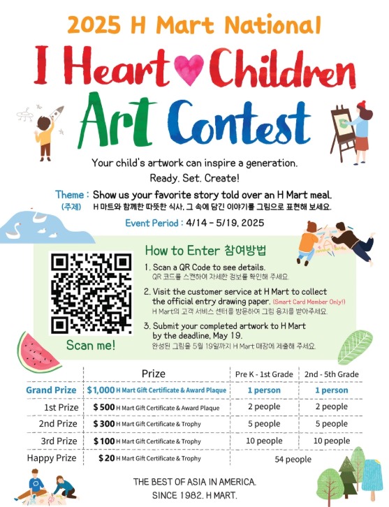 대회 기간은 오는 14일부터 5월 19일까지이며, H 마트 스마트카드 회원 자녀 중 프리 킨더가튼부터 5학년까지 참가할 수 있다.