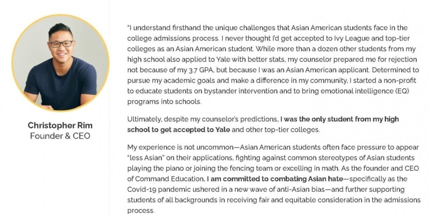 30일(현지시간) 영국 일간 텔레그래프는 미국에서 '커맨드 에듀케이션'을 설립한 크리스토퍼 림과 인터뷰를 통해 명문대 입학을 위한 컨설팅 서비스에 대해 보도했다.