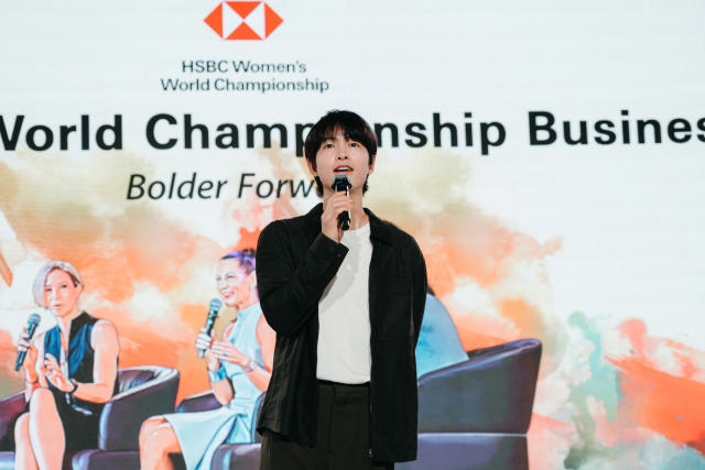 송중기가 지난달 28일 HSBC 위민스 월드 챔피언십 비즈니스 포럼에서 연설을 하고 있다. 사진 제공=HSBC 위민스 월드 챔피언십 비즈니스 포럼