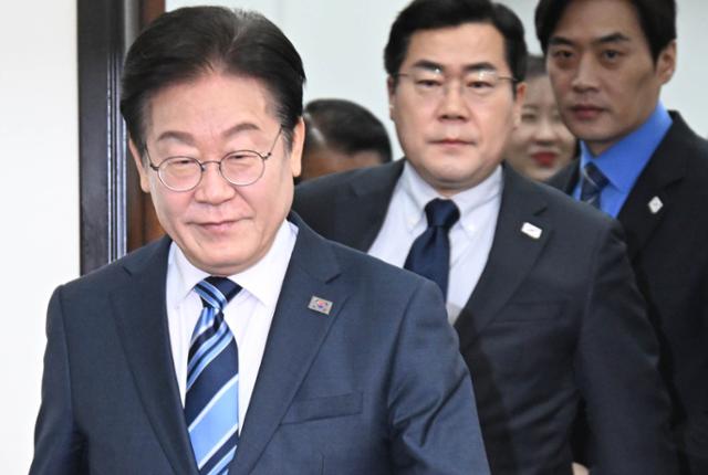 이재명 더불어민주당 대표가 17일 국회에서 열린 최고위원회의에 참석하고 있다. 고영권 기자