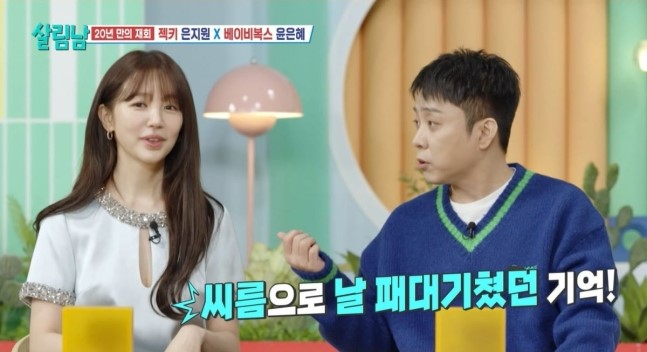 윤은혜는 1일 방송된 KBS2 '살림하는 남자들 시즌2(이하 살림남2)'에 해외 일정으로 자리를 비운 백지영을 대신해 스페셜MC로 출연했다. 은지원은 "되게 오랜만 아니냐"며 반겼다. 윤은혜는 "거의 20년 만이다"라고 했다. 은지원은 "벌써 20년 지났냐"며 "우리 'X맨'도 했다. 나를 씨름에서 패대기쳤던 게 기억난다"고 회상했다. 윤은혜는 "예쁘게 입고 왔는데 패대기라는 이야기를 듣는다"라며 민망해했다. 그러면서도 "그때는 오빠가 그런 게 아니고 많은 남자들을 (패대기쳤다)"고 인정해 웃음을 안겼다.