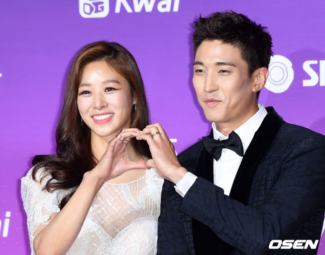 [OSEN=이대선 기자] '2017 SBS 연예대상'에서 배우 장신영, 강경준 부부가 레드카펫을 밟고 있다. [사진] OSEN DB.
