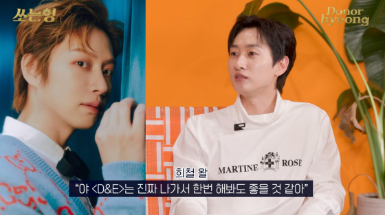 이에 은혁은 "희철 형 같은 경우는 되게 적극적으로 추천했다. 'D&E는 나가서 해봐도 좋을 것 같다. 빨리 나가라. 언제 나가냐. 빨리 나가서 뭘 해봐라'고 하더라"고 답했다.