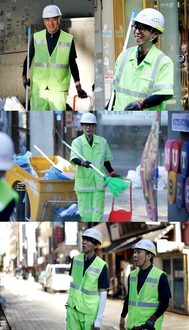 '쓰레기 아저씨' 김석훈과 함께 새벽 청소에 나선 유재석, 하하, 주우재의 모습이 그려진다.