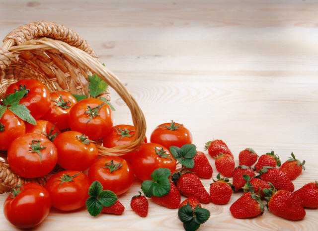 ▶토마토=토마토에는 항산화 작용 및 항암 효과가 뛰어난 라이코펜 성분이 풍부하다. 라이코펜은 활성산소를 배출시켜 세포 노화를 방지한다. 이에 더해 비타민 A, 비타민 C와 같은 항산화 성분이 풍부하며, 비타민 K가 많아 칼슘이 빠져나가는 것을 막아 골다공증과 뇌 기능을 유지하는 데 좋다. 토마토는 완전히 빨갛게 익었을 때 각종 영양이 가장 풍부하며, 기름으로 조리했을 때 영양 흡수가 더 잘 된다.