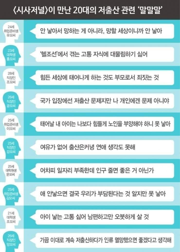 20대가 애를 안낳는이유라고 합니다