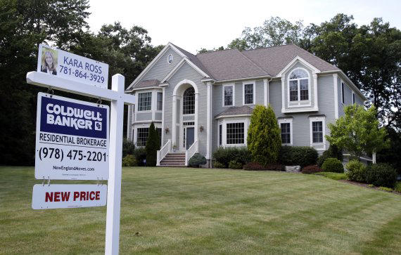 지난 2017년 7월 미국 매사추세츠주 노스앤도버에 매물로 나온 집이라는 부동산업자의 광고판이 세워져 있다.