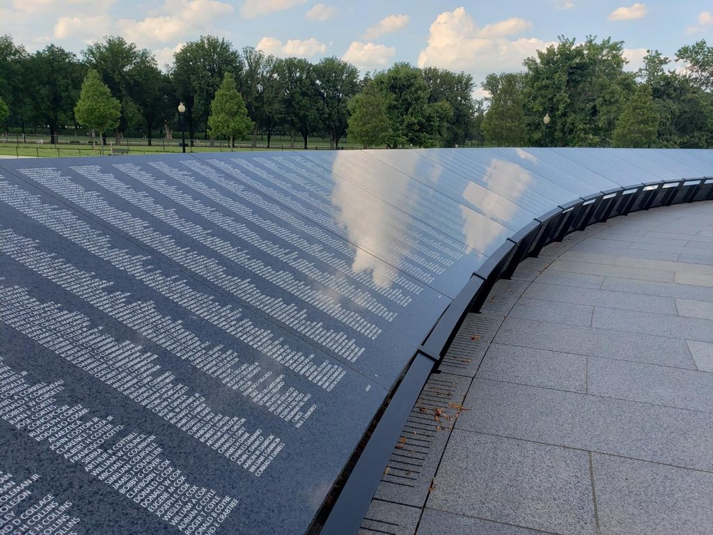 (워싱턴=연합뉴스) 이상헌 특파원 = 미국 워싱턴DC에 있는 한국전쟁 기념공원 내 참전용사 ‘추모의 벽’이 공식 완공을 앞두고 있다. 한국전쟁 전사자의 이름이 새겨진 ‘추모의 벽’ 전경.