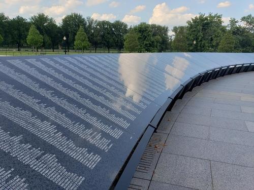 화강암 벽엔 한국전쟁 때 숨진 미군 3만6,595명과 배속돼 함께 싸우다 희생된 한국 카투사 7,174명 등 4만3,769명의 이름이 새겨졌다.