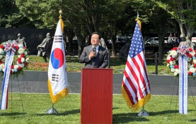 지난달 25일 한국전참전기념공원에서 열린 기념식에 참석한 조현동 주미대사. [대사관 페이스북]