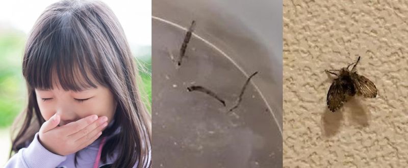 중국 양저우의 8세 소녀가 토해낸 유충과 나방파리(오른쪽). 출처=게티이미지뱅크, 소후뉴스