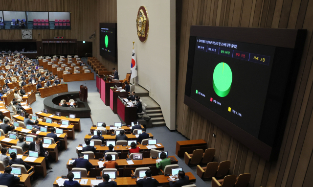 25일 오후 국회 본회의에서 국회의원의 가상자산 자진신고 및 조사에 관한 결의안이 가결되고 있다. 연합뉴스