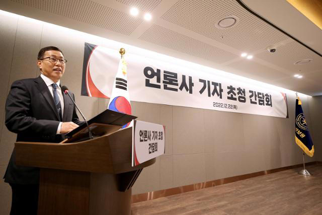 백종욱 국가정보원 3차장이 22일 경기 성남시 판교 소재 국가사이버안보협력센터에서 열린 기자간담회에서 인사말을 하고 있다. [국가정보원 제공]