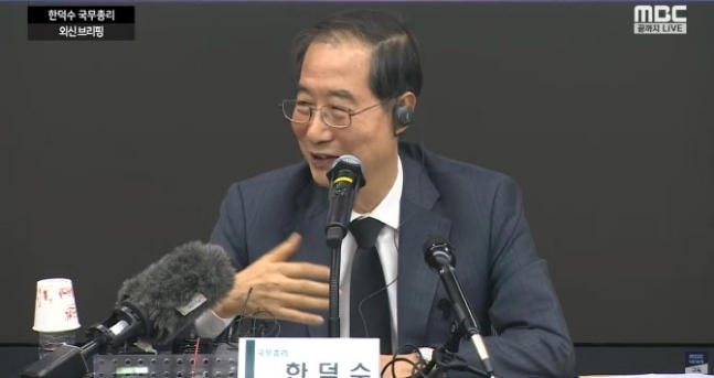 한덕수 국무총리가 1일 오후 서울 중구 프레스센터에서 열린 ‘이태원 핼러윈 참사’ 관련 외신기자 간담회에서 발언하고 있다. MBC 방송화면 갈무리 © 제공: 세계일보