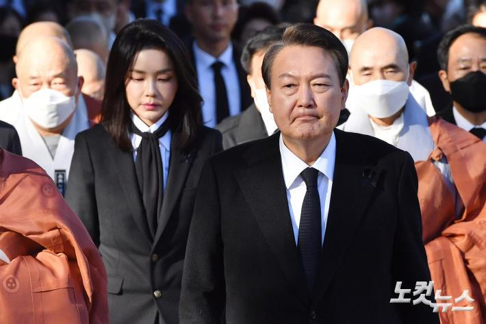 윤 대통령은 김건희 여사와 함께 이날 서울 종로구 조계사에서 열린 '이태원 참사 추모 위령법회'에 참석해 추도사를 통해 "사랑하는 아들 딸을 잃은 부모님과 가족이 마주한 슬픔 앞에 가슴이 먹먹하다"며 이같이 말했다. 윤 대통령은 "그 어떤 말로도 그 슬픔을 대신할 말이 없다"며 "희생자의 명복을 빌며 유가족에 위로의 말씀을 올린다"고 말했다.