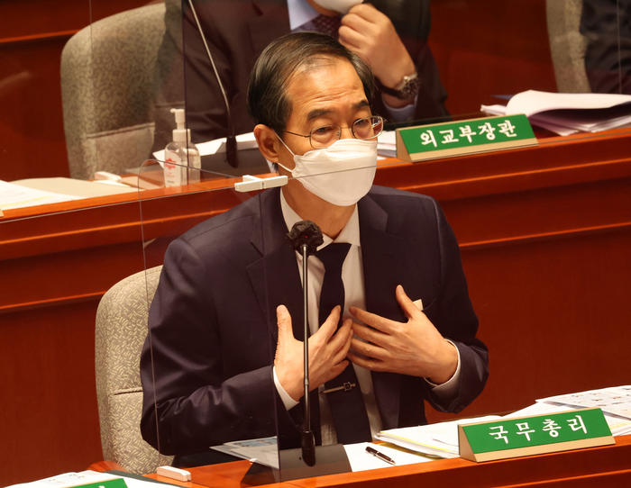 한 총리는 이날 내년도 예산안에 대한 종합정책질의가 진행된 국회 예산결산특별위원회(예결위) 전체회의에 출석해 “책임에 대한 얘기를 하기 위해서는 어느 정도 사실이 좀 더 밝혀져야 한다”며 “수사를 지켜보고 책임질 일이 있으면 책임지겠다”고 말했다. 그러면서 “정치적 책임도 어느 정도 팩트(사실)하고 조화를 이뤄야 한다”고 했다. 한 총리는 “윤석열 대통령에게 책임질 일이 있으면 책임지겠다고 하겠다”며 “아직 (윤 대통령에게) 사퇴 의사를 밝힌 적은 없다”고 말했다.