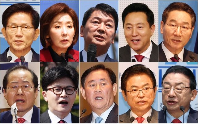 10일 현재까지 국민의힘 21대 대선 경선 출마를 공식화한 (첫줄 왼쪽부터 가나다순으로 시계방향) 김문수 전 고용노동부 장관, 나경원 국민의힘 의원,
