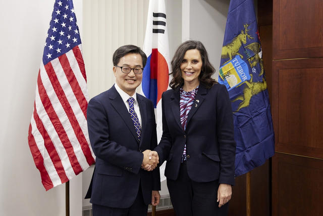 11일 도에 따르면 김 지사는 10일(현지시간) 미국 미시간주에서 그레첸 휘트머 주지사와 회담을 갖고, 자동차 부품 관세 공동 대응을 위해 손을 잡았다. 이번 합의는 김 지사의 제안으로 이뤄졌으며, 향후 양측은 신속한 실무협상에 착수하기로 했다.