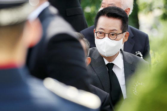 박지원 전 국정원장이 10일 오전 서울 동작구 국립서울현충원에서 열린 故 이희호 여사 3주기 추도식에 참석해 있다. 뉴스1