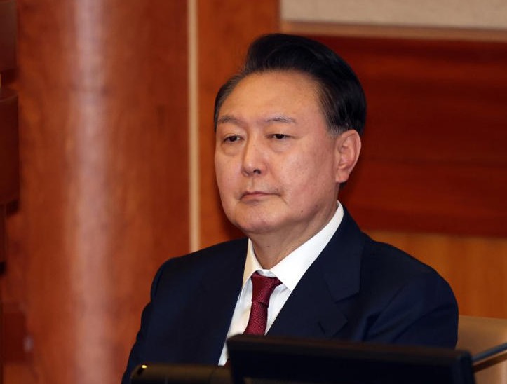 윤석열 대통령이 23일 오후 서울 종로구 헌법재판소에서 열린 탄핵심판 4차 변론기일에 출석해 있다. 뉴스1