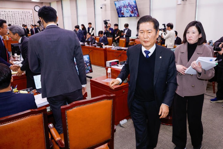이날 법사위에선 민주당이 주도하고 있는 국회 탄핵소추단이 대통령 탄핵소추안에서 내란죄를 뺀 것을 두고 여야가 공방을 벌였다. 국민의힘이 “내란죄를 빼는 건 있을 수 없는 일”이라고 주장하자 정 위원장은 자기 발언을 통해 이같이 말하고 회의를 정회했다.