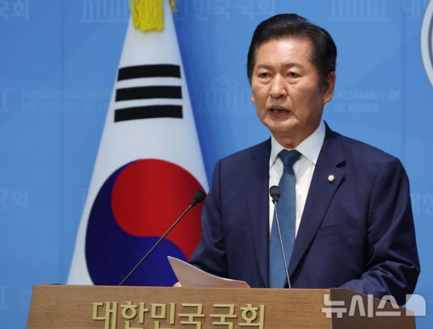 [뉴시스] 조성봉 기자 = 정청래 더불어민주당 의원이 15일 오후 서울 여의도 국회 소통관에서 당 대표 출마선언을 하고 있다. 2025.06.15.