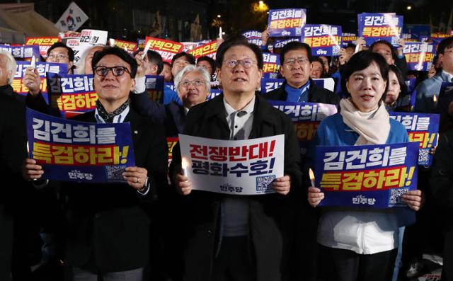 이재명 더불어민주당 대표가 9일 오후 서울 세종대로에서 열린 민주당 김건희·윤석열 국정농단 규탄-특검 촉구