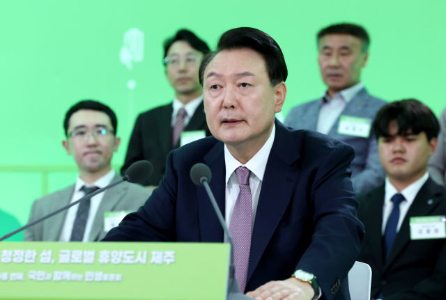윤석열 대통령이 15일 제주특별자치도 제주국제자유도시개발센터에서 ‘세계로 열린 청정한 섬, 글로벌 휴양도시