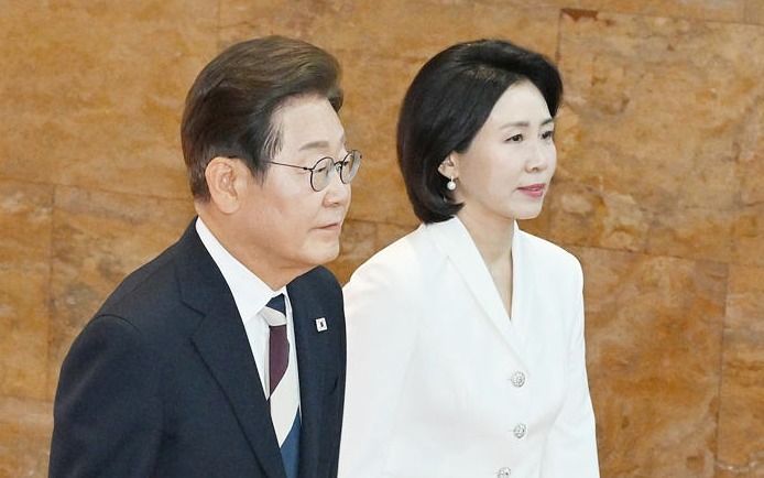 이재명 대통령이 지난 4일 서울 여의도 국회 본청 로텐더홀에서 제21대 대통령 취임 선서를 하기 위해 김혜경 여사와 입장하고 있다. 자료 사진 / 뉴스1