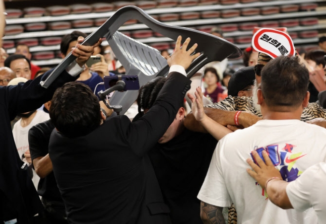 "'배신자' 외치더니 의자 던지기까지"...한동훈 무대 오르자 몸싸움