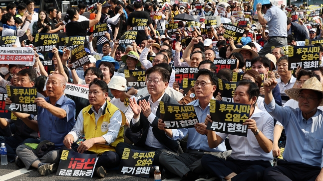 이재명 민주당 대표는 연설에서 "일본이 넘어서는 안 될 선을 넘었다"며 "핵 오염수 방류는 태평양 연안 국가에 대한 전쟁을 선포한 것"이라고 비판했습니다.
