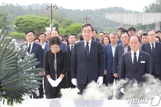 이 전 총리는 방명록에 '오월 영령들이시어 지혜와 용기를 주소서. 힘겨운 국민들을 굽어 살피소서'라고 작성했다. 참배에는 이개호 의원과 김한종 장성군수 등 지지자 200여명이 참석했다.